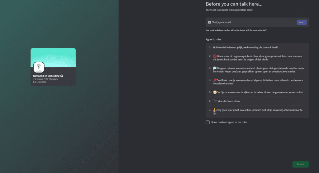 1. Volg deze uitnodigingslink naar de server van Natuurlijk in verbinding: https://discord.gg/95zMPW7msK